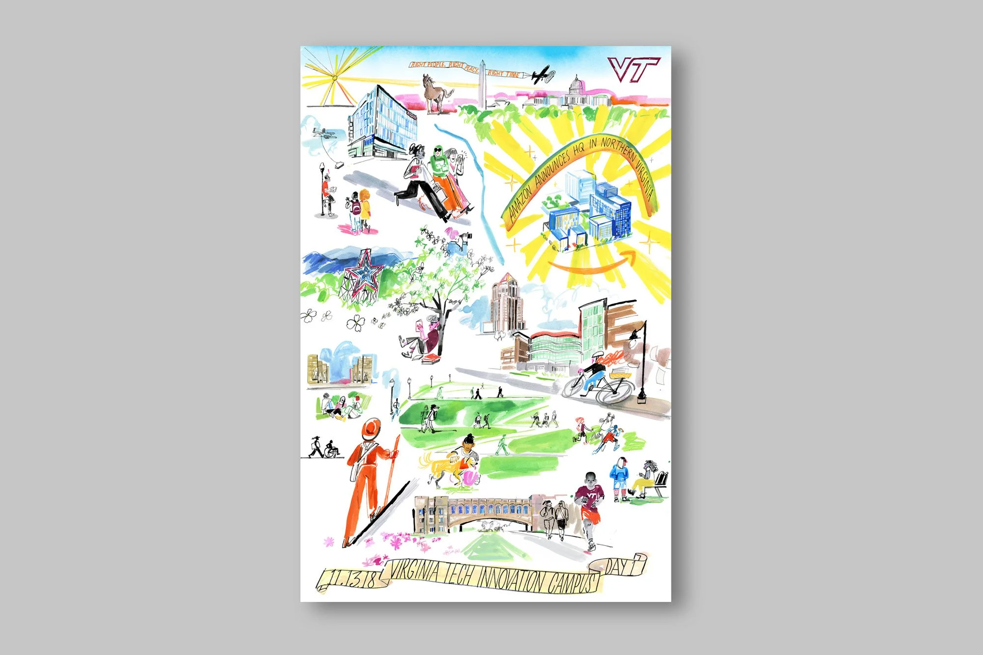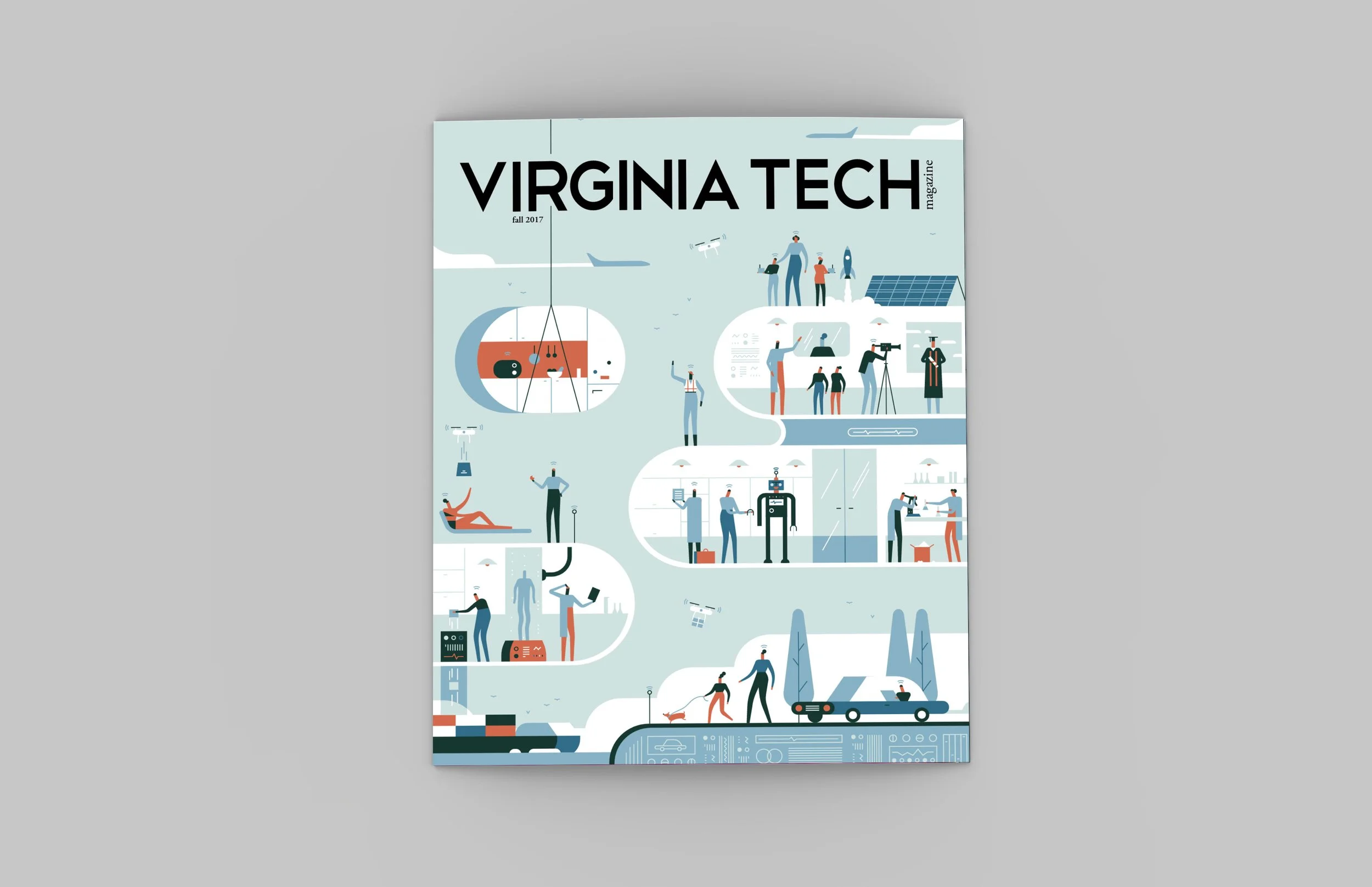 Drawing on my experience with illustration, I have had the opportunity to art director several projects at Virginia Tech. There are many talented designers and photographers in communications and marketing, but now and then as we tell a particular story, it helps to use the work of a professional illustrator.