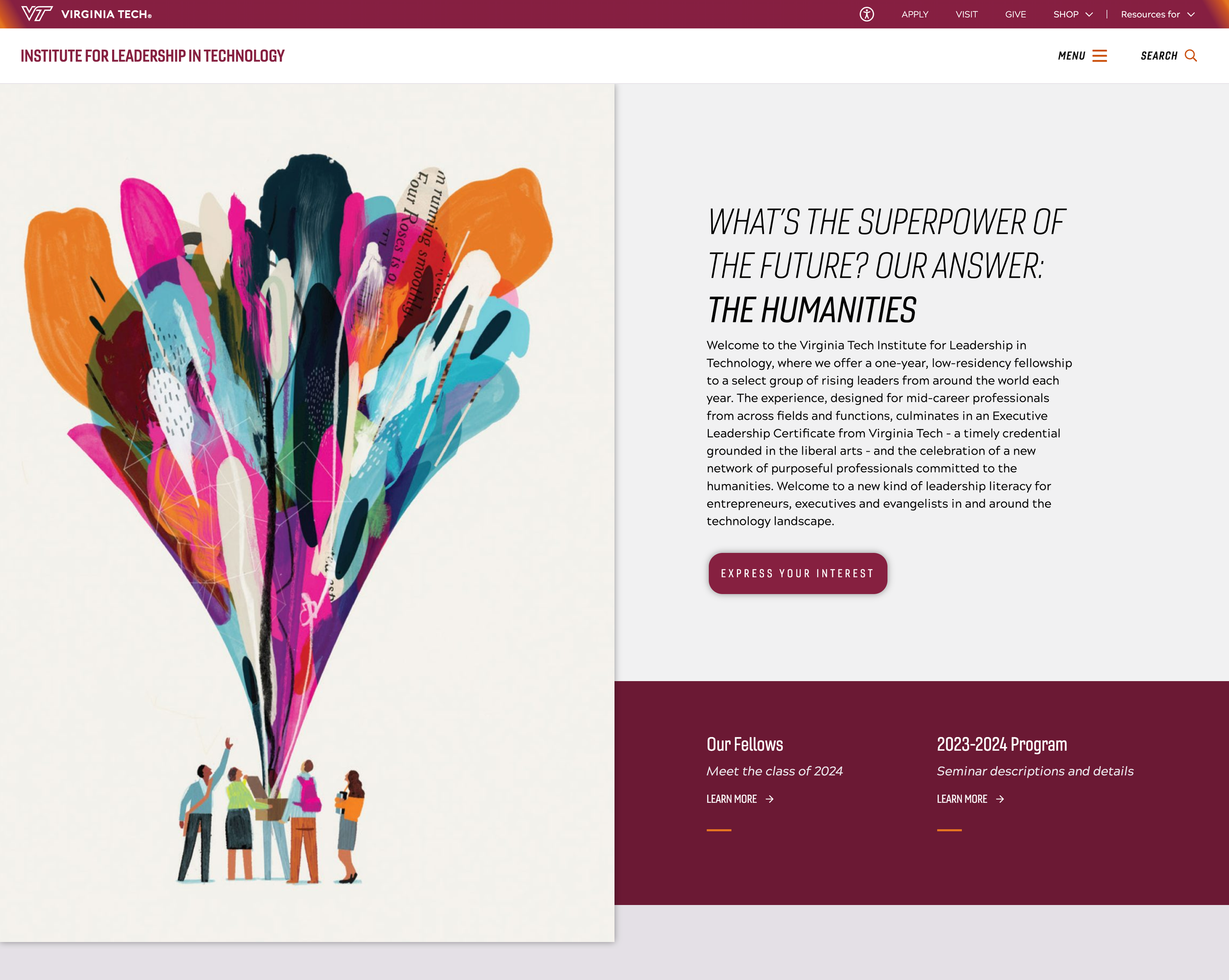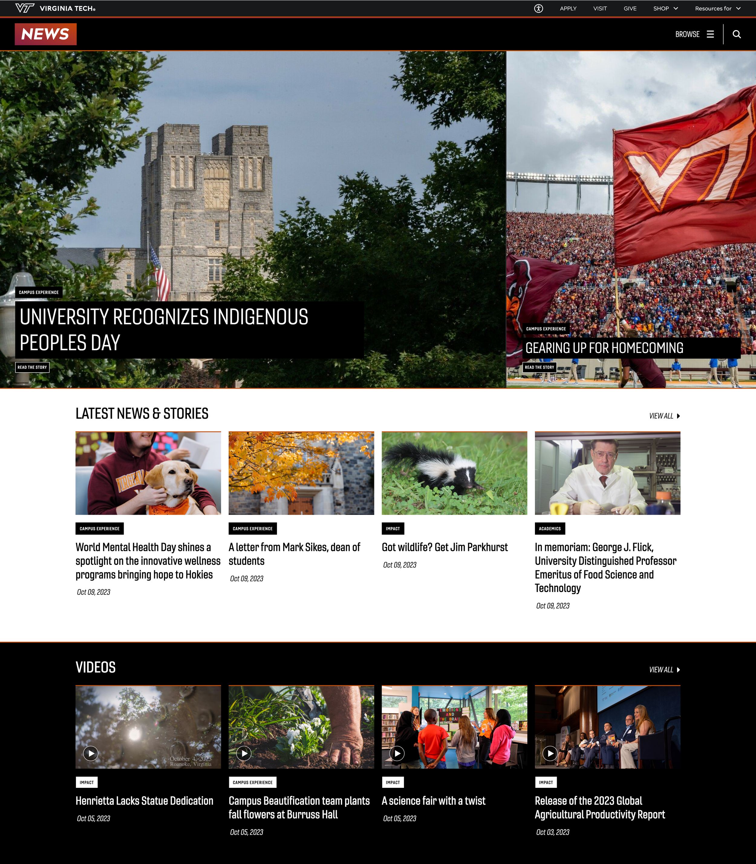 With a huge variety of programs, initiatives, and academic areas, it was important to create a space where the story of Virginia Tech could be told. This website brings together events, stories, and videos featuring the impact of research and life at the university.